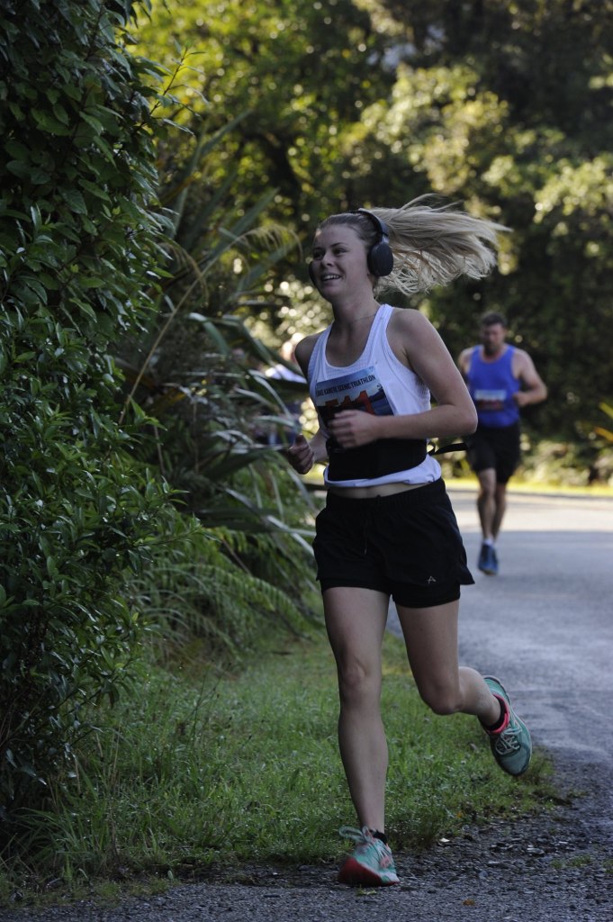 Athletes begin their race at Hans Bay, running up the sealed road, turning right onto Wards Road. Running down the gravel, athletes take a right turn onto the Water-race track, running through here, then left onto the sealed road, back to Hans Bay. Running through the timing chute, kayakers then paddle South down the lake for 3.75km, turning around a buoy, and paddle back to Hans Bay. Athletes again run through the timing chute, and cyclists then cycle up the sealed road, turning right onto Milltown Road which is gravel. Cycling for approximately 10.5km, turning at a marked point, and back to the finish line at Hans Bay.